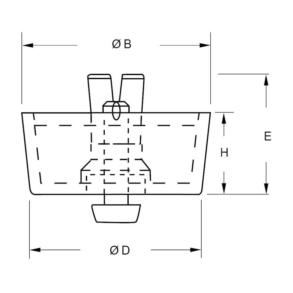 | Art.-Nr. | Typ | ØA (mm) | ØB (mm) | ØD (mm) | E (mm) | H (mm) | Plattenstärke (mm) | Datenblatt | |