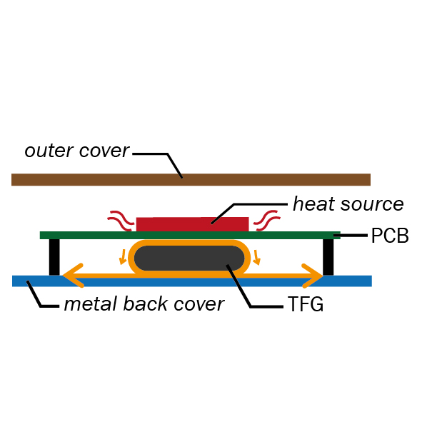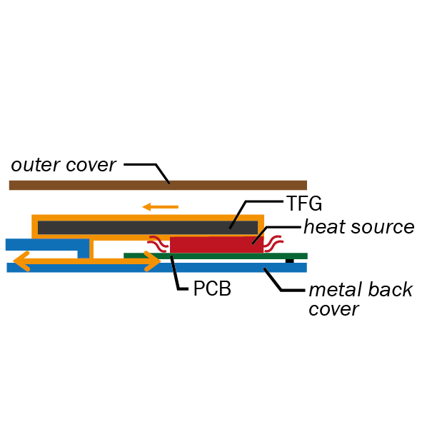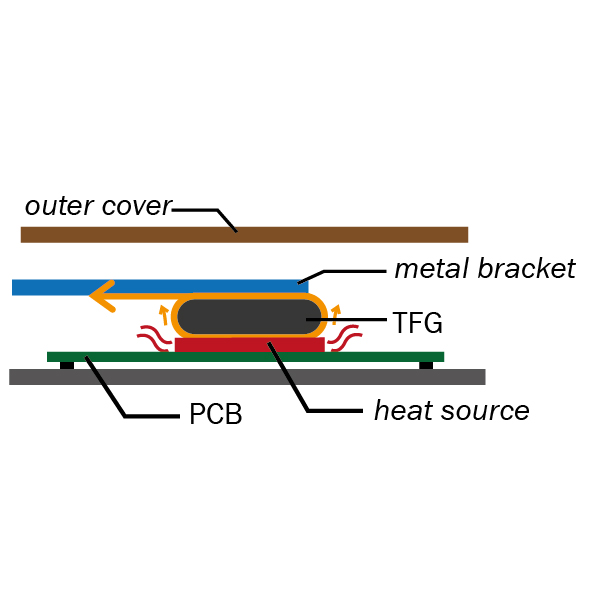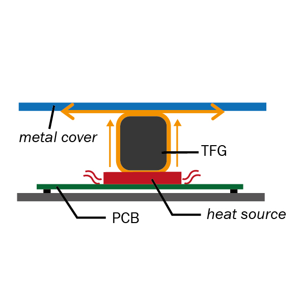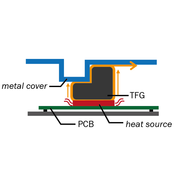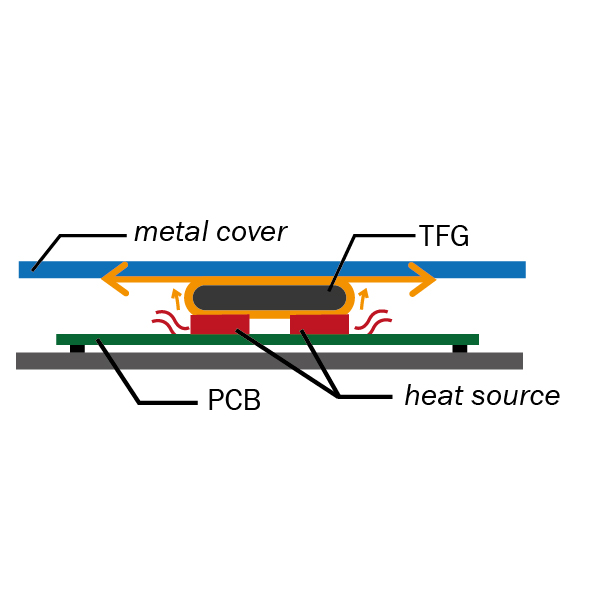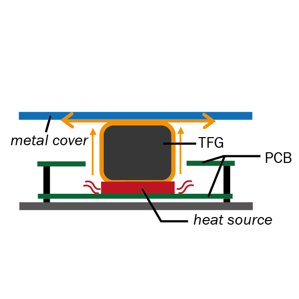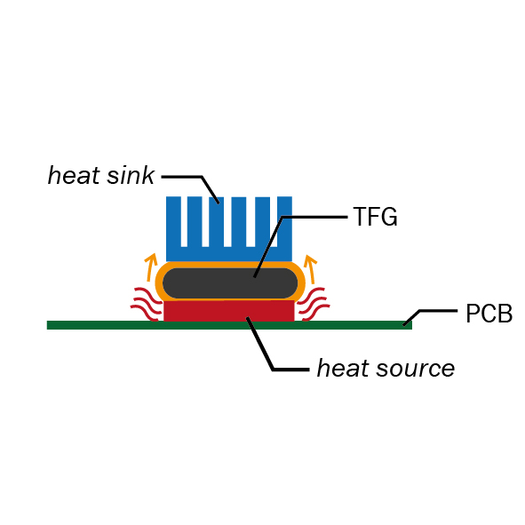 Im Gegensatz zu TFG können Silikon Thermal Pads im Langzeitgebrauch hart werden. Durch den permanenten Druck kann sich die Leiterplatte verformen. TFG hingegen ist sehr elastisch und übt keinen Druck auf die Leiterplatte aus.
